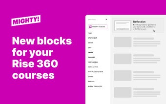 Mighty - это мощное расширение для Google Chrome, которое стремится улучшить ваш контент в Articulate Rise 360. С помощью Mighty вы можете разблокировать полный потенциал ваших курсов Rise 360 и повысить ваш опыт создания.
